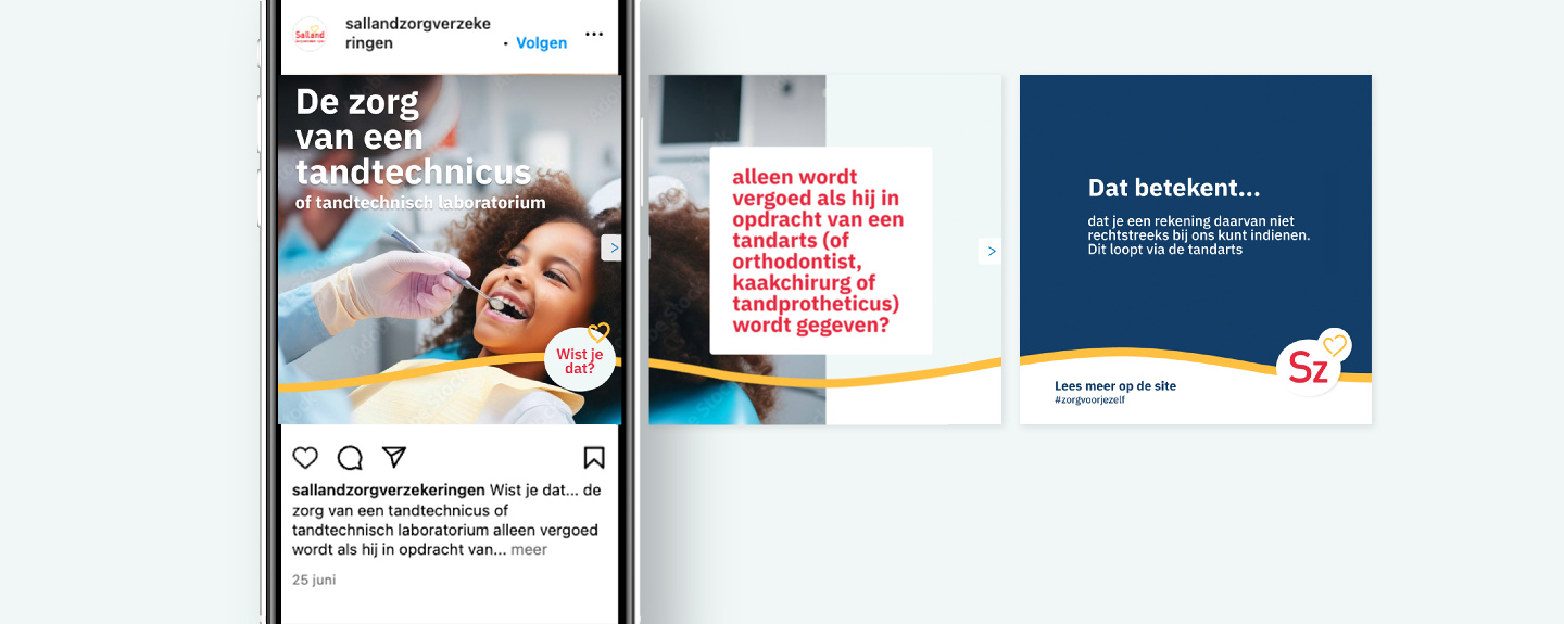 A strong organisation strategy is just the beginning – now you need to show who you are and what you stand for. We helped shape the communication strategy for 2024 through interviews, analyses, and strategic sessions. The outcome is a robust strategy with a practical work plan that can be implemented immediately. We expect great things from Salland Health Insurance. Especially since our Concept & Design team made a valuable contribution to this project by upgrading the brand identity and developing an end-of-year campaign!
